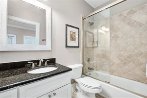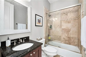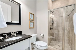 • Primary bedroom with King bed and private full bathroom with double vanity, shower & tub