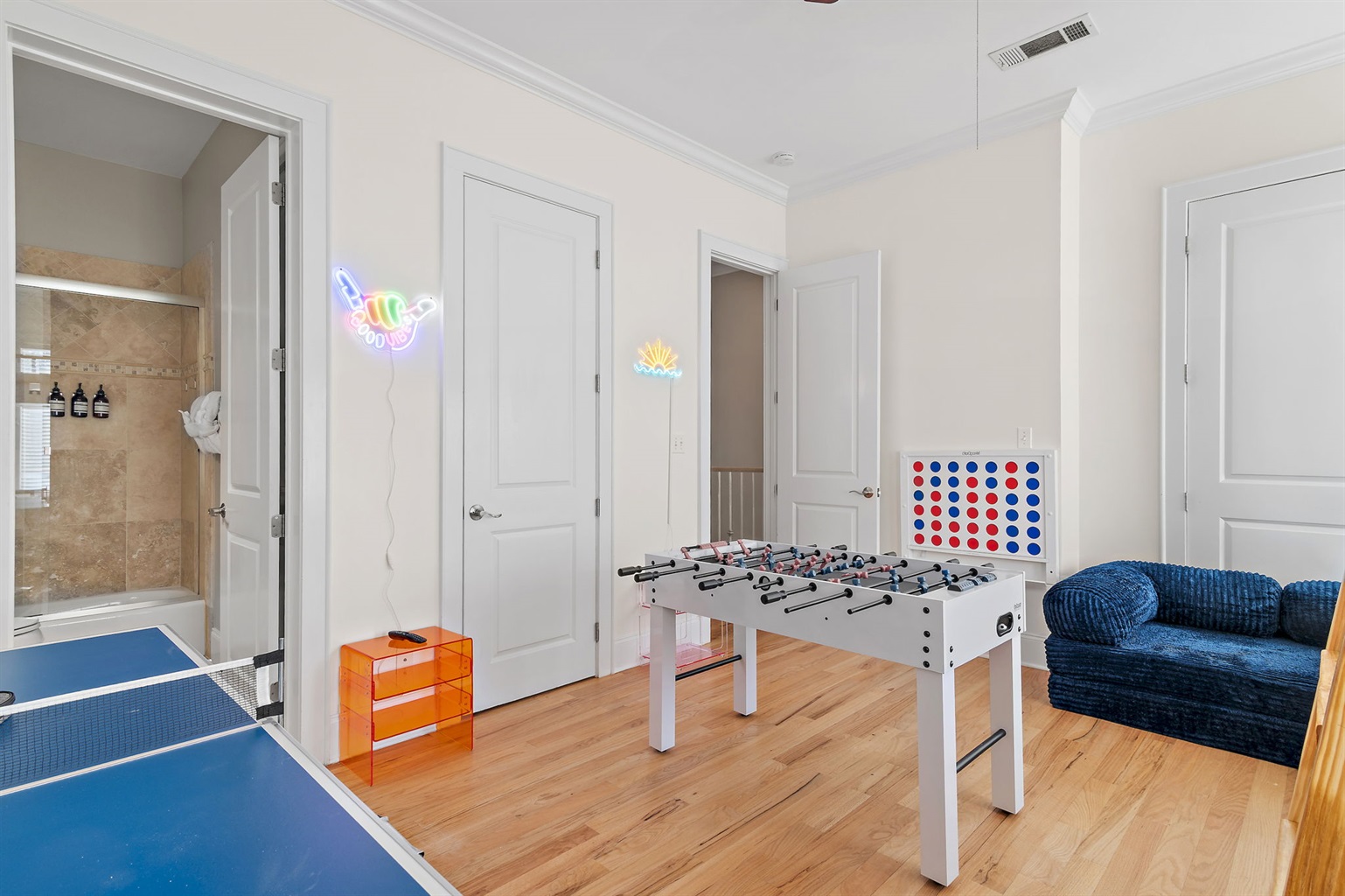 • Kids "Bunk Room" on 3rd floor with 55" smart TV, ping pong, foosball, extra large wall-mounted Connect4 and tons of games, books & toys